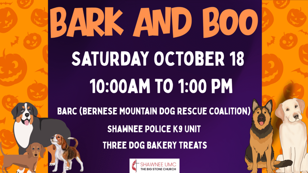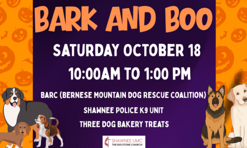 Saturday October 18th from 10:00 am to 1:oo pm. Join us at the pumpkin patch to meet the Shawnee Canine Unit, BARC and treats for your furry friends from Three Dog Bakery