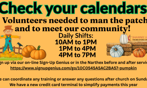 Check your calendar and sign up to work the Pumpkin Patch. Shifts are 3 hours. Training will be prov… Read More