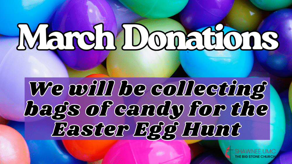 For the month of March, we will be collecting bags of candy for our annual Easter egg hunt. Please drop off your candy in the bin in the Narthex