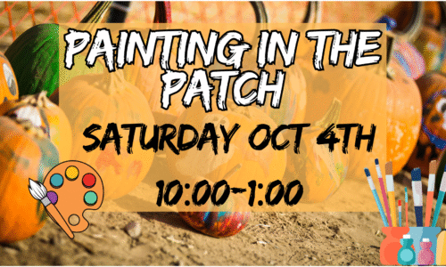 Looking for a fun activity for the kids? Painting in the pumpkin patch is taking place on Saturday October 4th from 10:00 am-1:00 pm